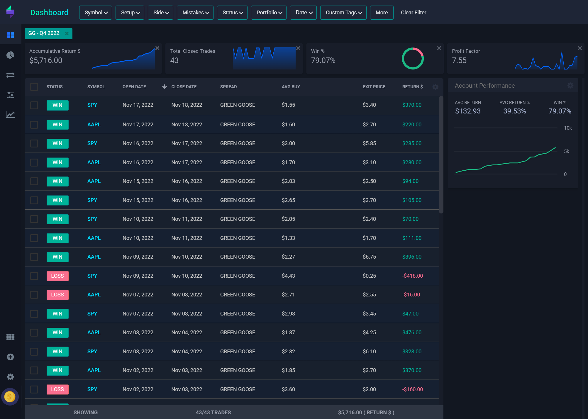 The GG Overnight Gap System, with alerts provided on my other substack GG Alerts, was developed seven years ago. I launched its original version in November 2016 in a course offered through another platform to teach novice traders about the basics of options. It is amazing that the system has morphed into what it is today. It has become so successful that others have taken its principles and claimed it as their own. (I’ve always said that being copied is the best form of flattery.) I continue to trade this system every week. GG this quarter has completely offset the performance of Fall 2022 ER season (a $10,000 account is used for tracking purposes).