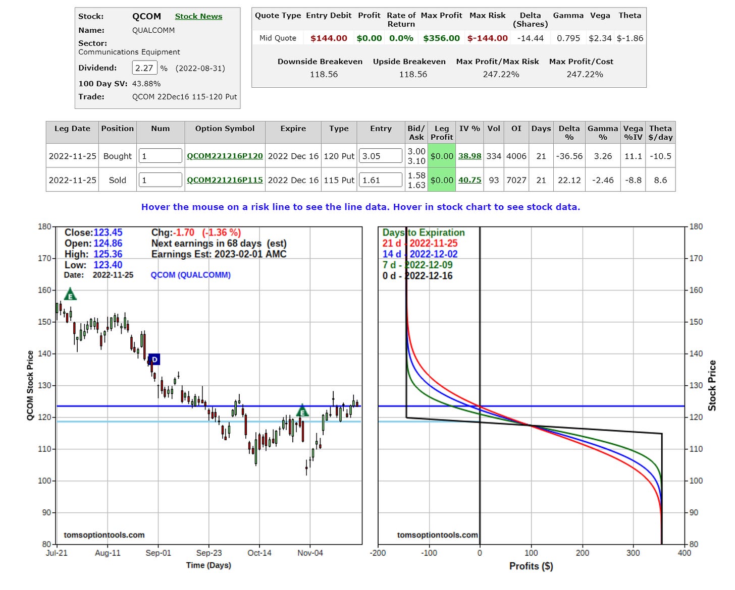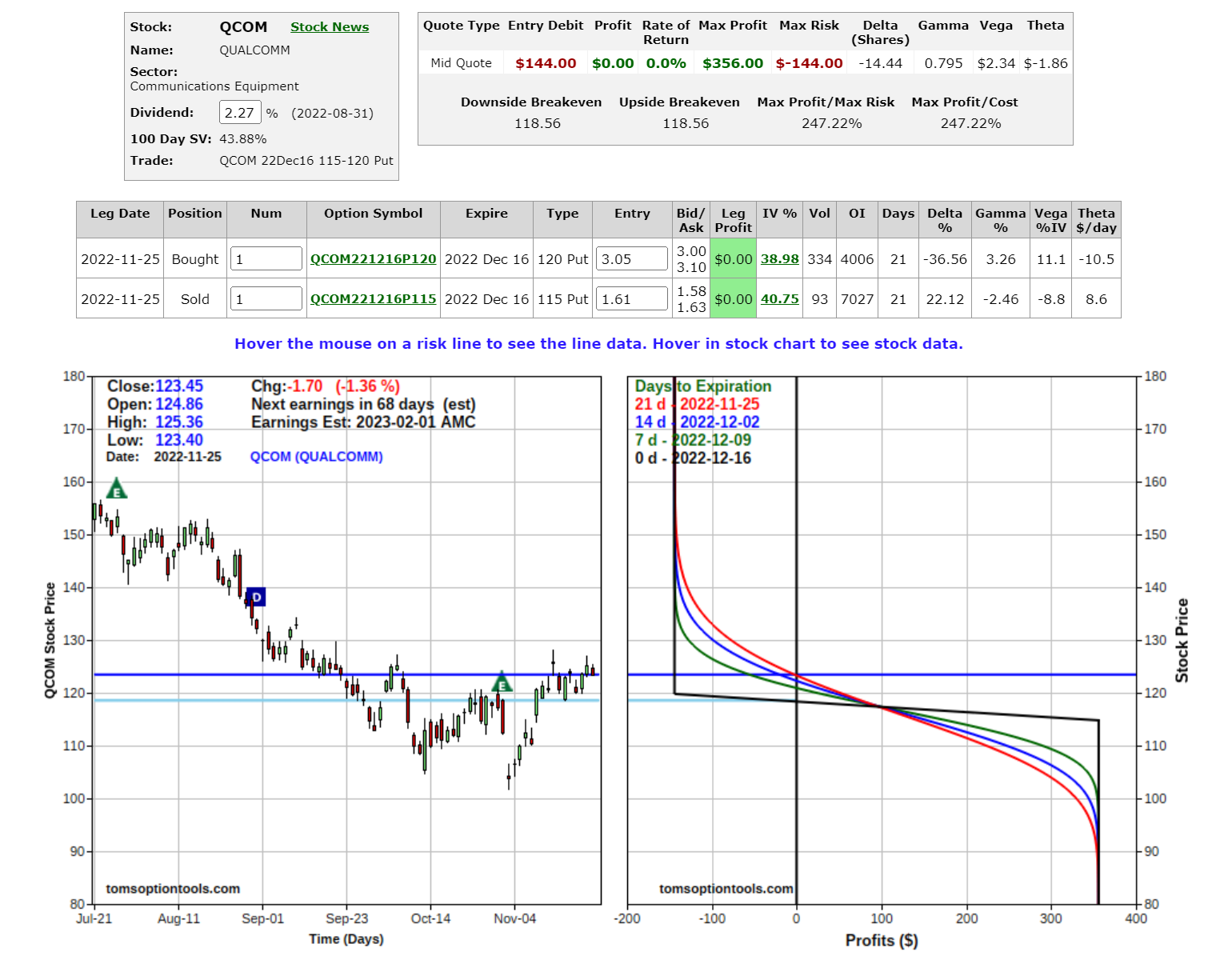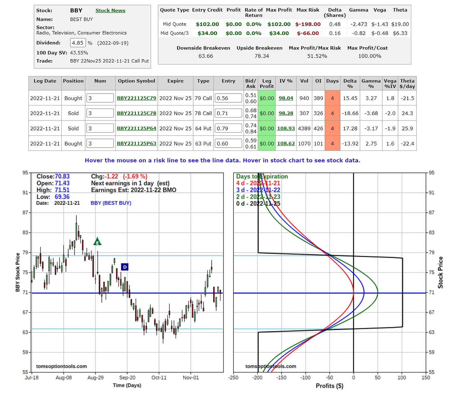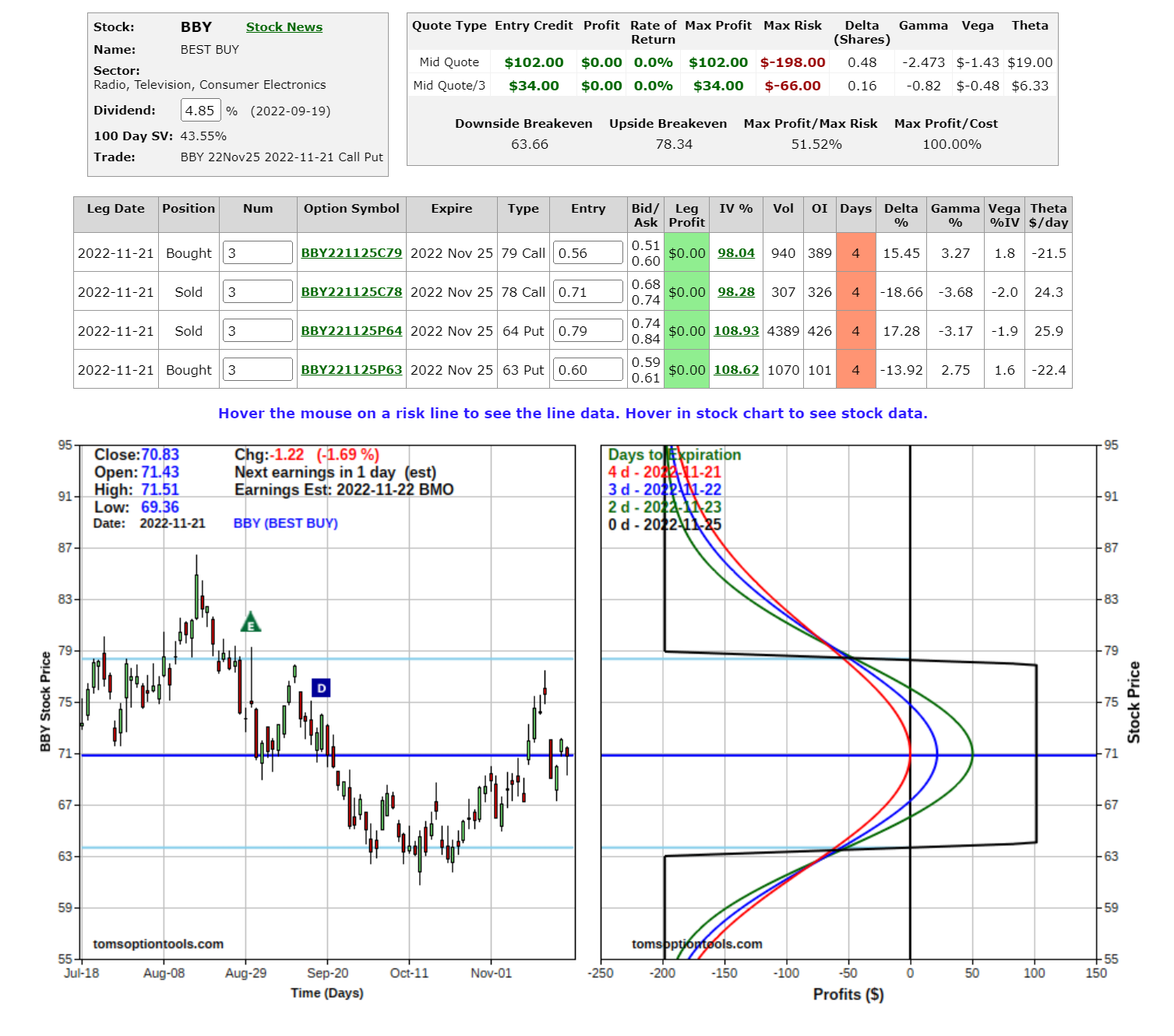 Risk graphs courtesy of TomsOptionTools