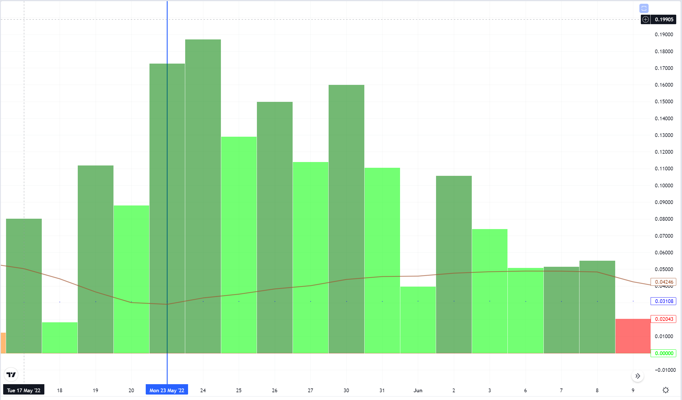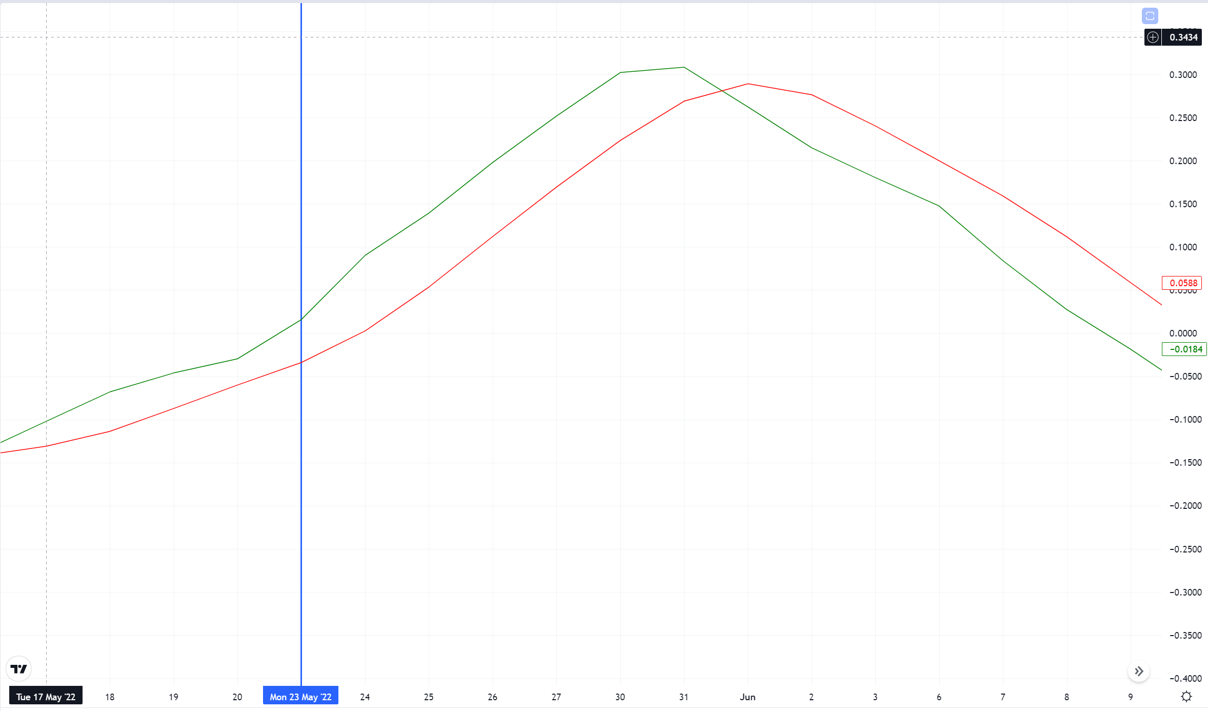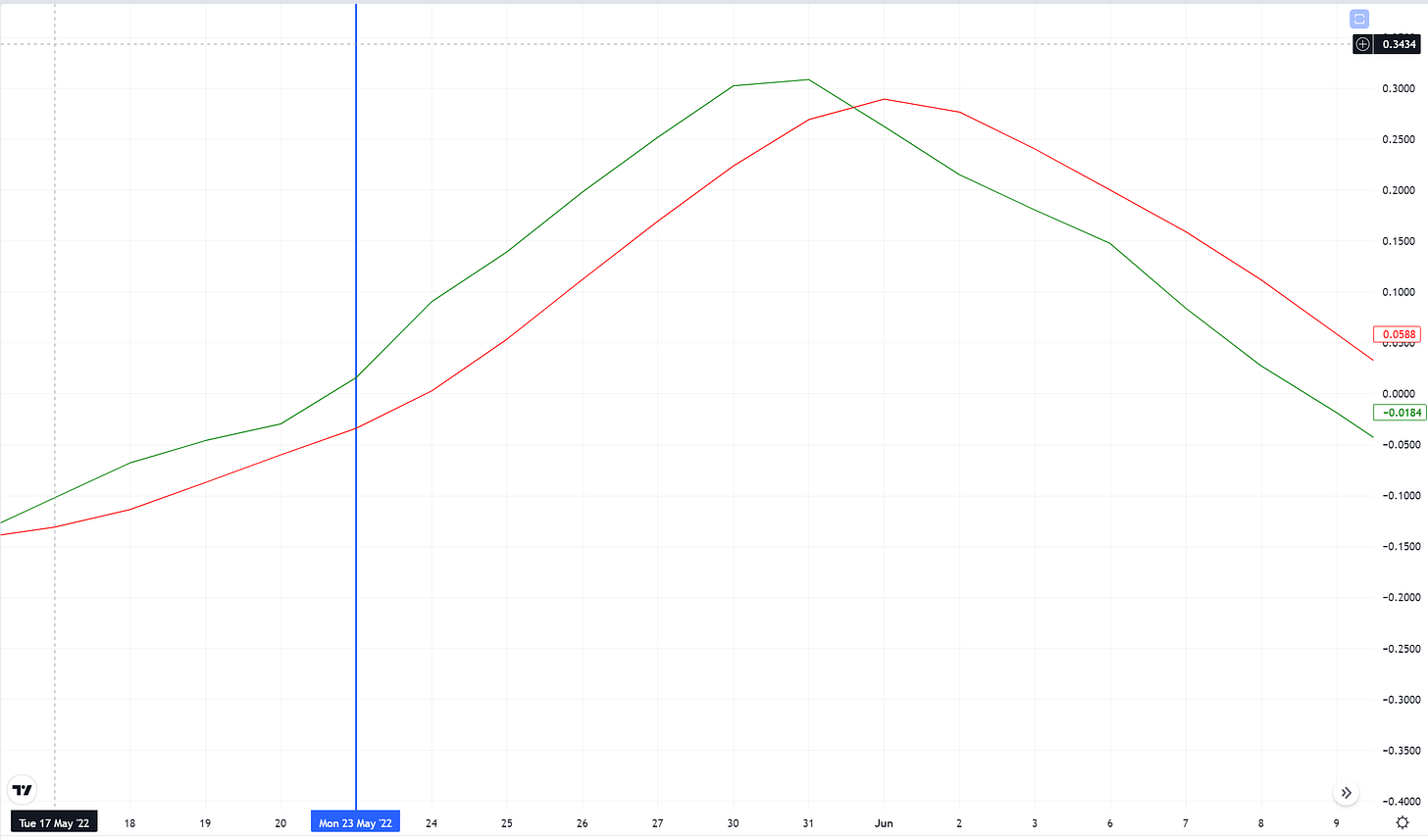 May 23, 2022 on the daily chart (which closes at 5:00 PM Wall Street Time)…